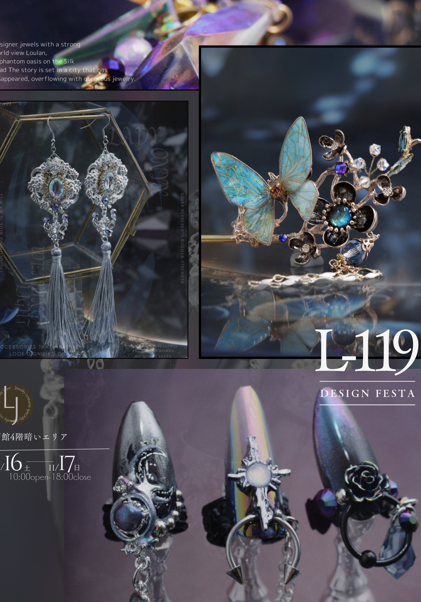 会場の雰囲気、楼蘭宝石のディスプレイの世界観を、